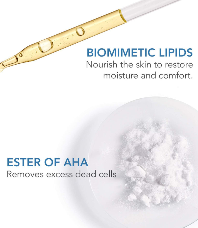 Enriched with malic acid ester, a next-generation keratolytic agent, this innovative oil delicately removes excess dead skin cells while maintaining the skin’s natural pH balance—making it ideal even for sensitive skin. A blend of biomimetic lipids including ceramides, squalene, and plant oils rich in essential fatty acids helps restore and reinforce the skin barrier.